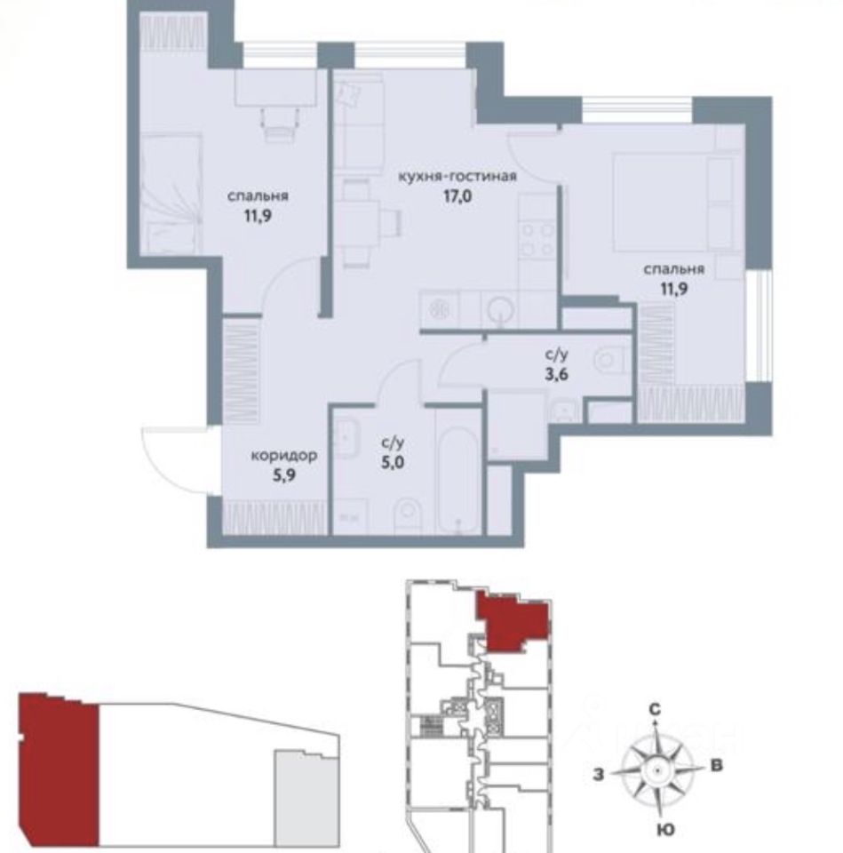 | Кол.во комнат | 2 |